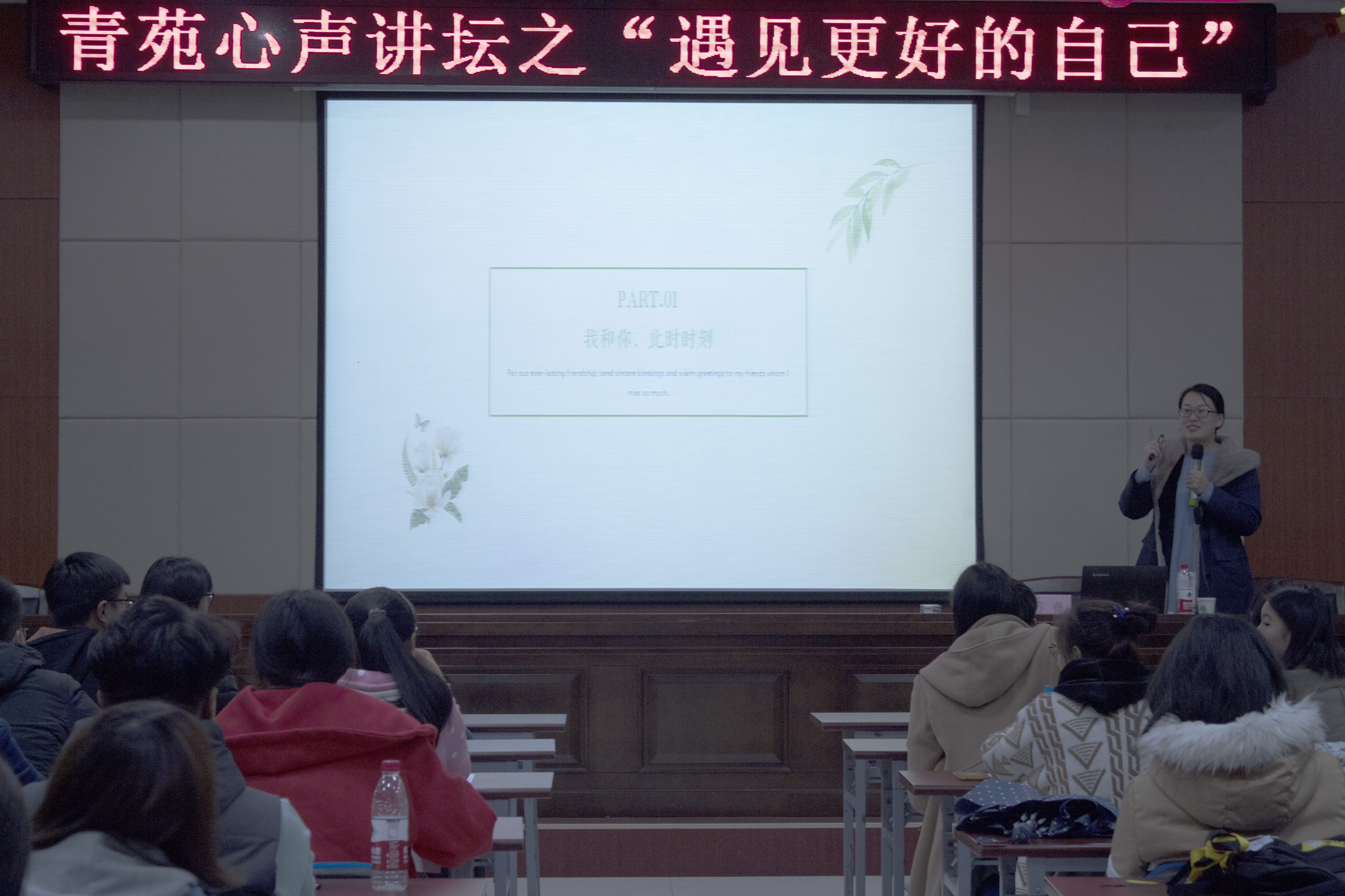 11月8日,我校“青苑心声”讲坛心理健康教育专题报告会在尚识楼一层培训教室举行。齐鲁师范学院心理健康教育与咨询中心主任苏睿老师应邀为广大青年学生做了以“遇见更好的自己”为主题的专题报告。