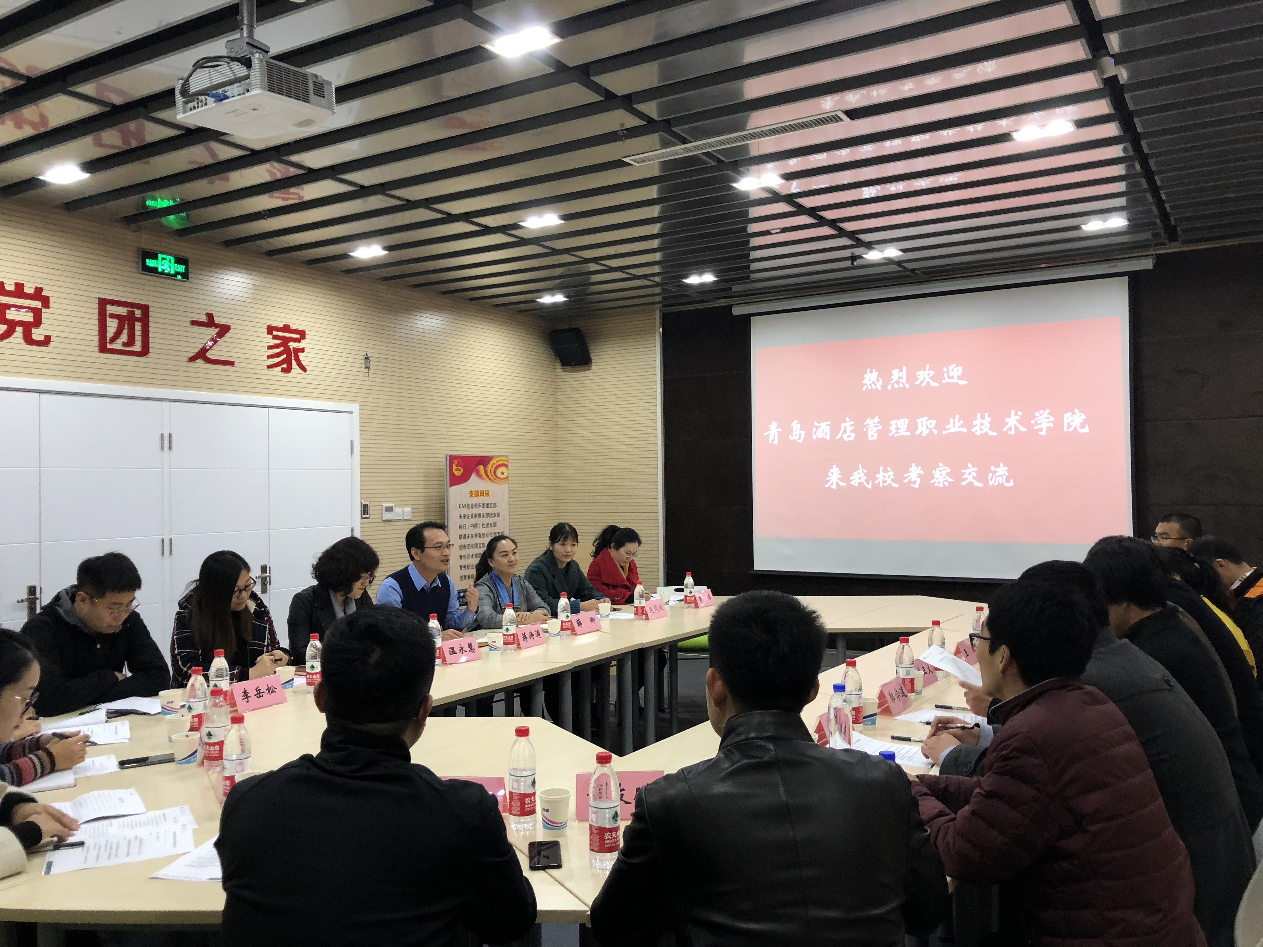 蒋涛涛对青岛酒店管理职业技术学院学生工作系统的同仁表示欢迎,他简单介绍了参会人员及我校的基本情况,他希望两校学工部门能够密切联系,增进了解,协同合作探索学生工作新平台、新机制,切实提高辅导员队伍的育人水平,促进大学生全面成长成才。潘正大介绍了此次考察交流的意图及参会人员,也表示希望两校今后加强联系,互通有无。