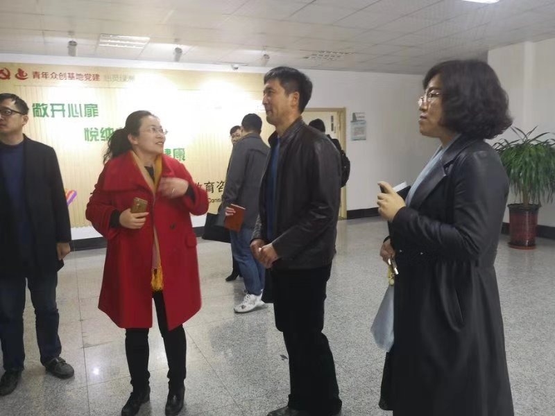 交流中,温永慧工作室成员夏晓丽从建设方向目标、建设过程、取得成效及未来展望等方面详细介绍了工作室的工作开展情况。思想政治教育科科长赵丽娟介绍了我校大学生思想政治教育工作的工作思路和举措,公寓管理中心赵凤姣对我校社区建设和管理工作进行了介绍。会后,潘正大一行到我校大学生心理咨询中心及温永慧工作室进行了实地考察,考察过程中双方人员进行了更深入的交流。
