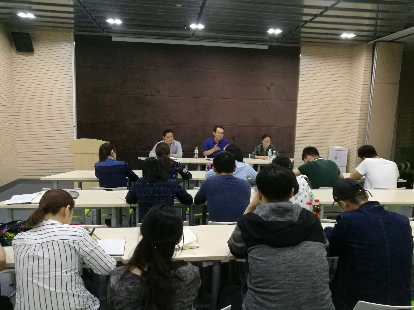 会上,学生工作组第一责任人、学工部部长蒋涛涛,学生工作组责任人、校团委书记范红伟,宣传部副部长赵健,宣传部采编室主任王晓辉就我校新媒体工作在本科评估中的重要意义、当前宣传工作存在的主要问题和下一步工作重点进行了强调说明,重点要求各学院对照《本科教学合格评估学生工作组实施方案》,在日常宣传工作顺利开展基础上,内提宣传水平,外展学校形象,形成一批有影响力的新媒体宣传队伍。