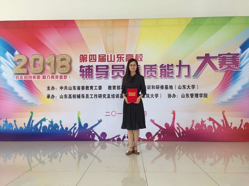 5月11日至14日,山东省第四届高校辅导员素质能力大赛在济南举行。大赛由山东省委教育工委、教育部高校辅导员培训和研修基地(山东大学)主办,山东高校辅导员工作研究及培训基地(山东建筑大学)承办,山东管理学院协办,共有131名辅导员参加决赛,470余名辅导员代表全程观摩,创历届人数之最。我校会计学院辅导员王慧代表学校参赛并荣获二等奖。