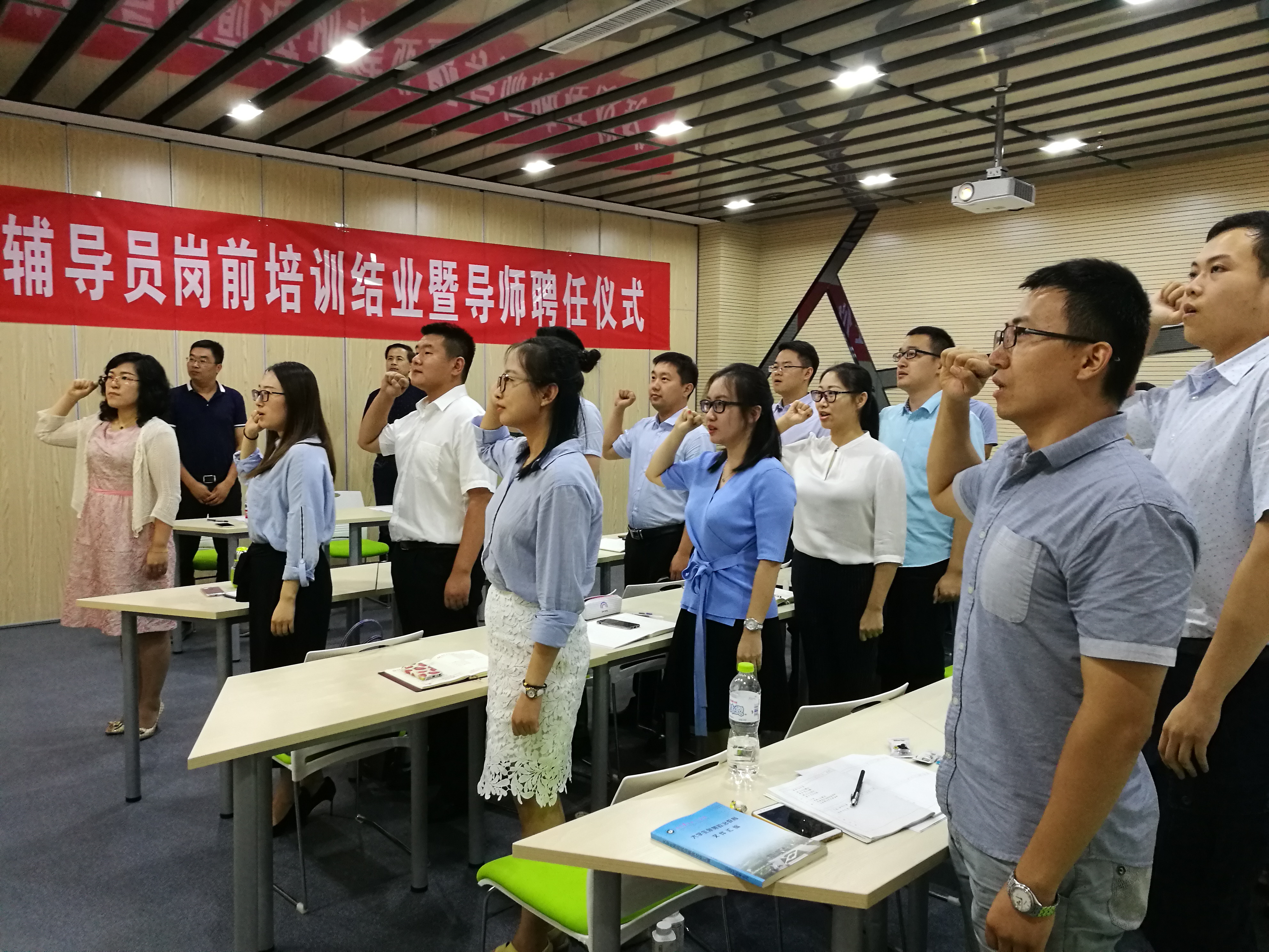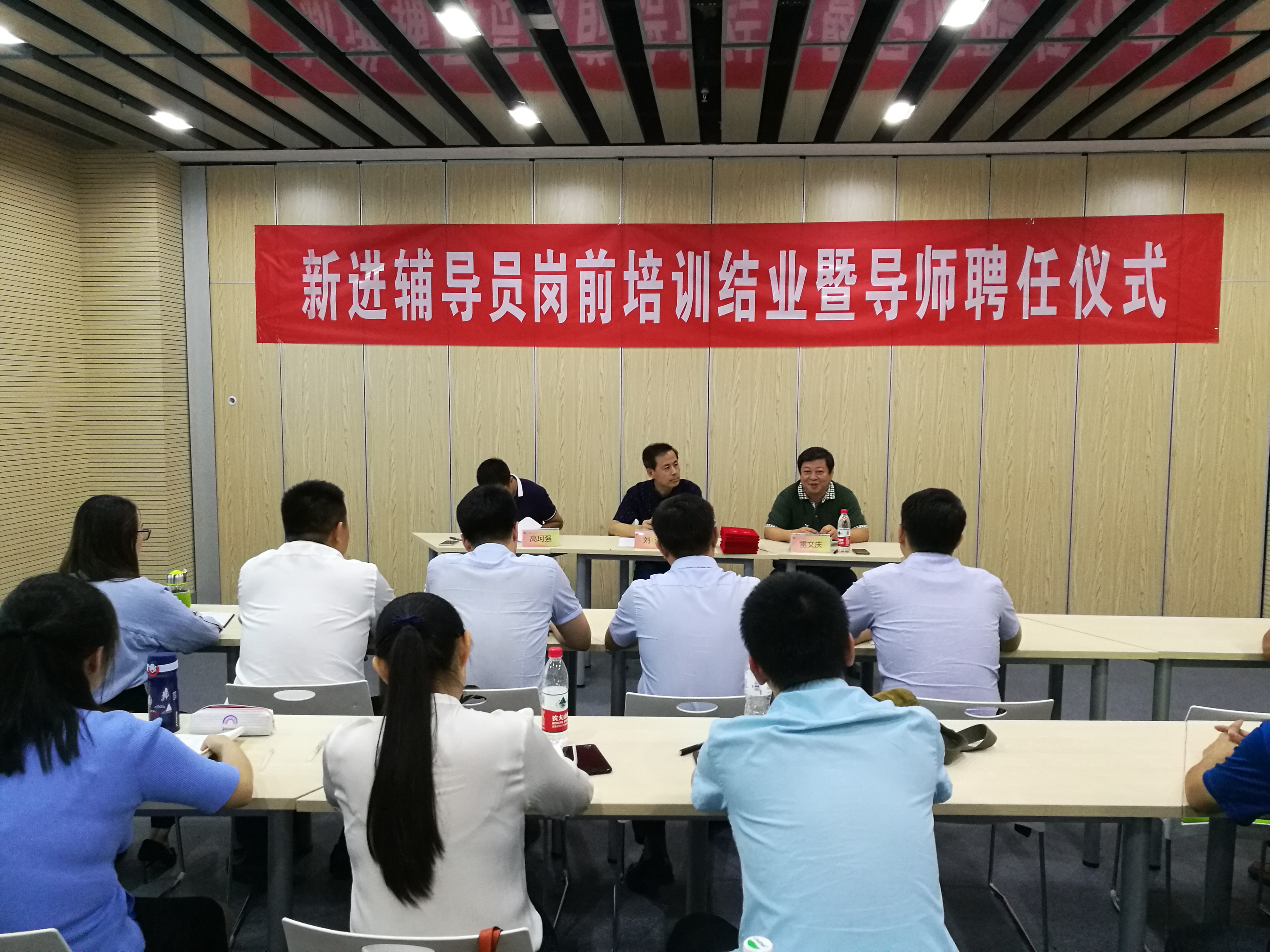 7月15日下午5点,我校2017年新进辅导员岗前培训结业暨导师聘任仪式在校青年众创基地培训室隆重举行。学生工作部全体人员、各学院党总支副书记及2017年新进辅导员参加仪式。校党委委员、副院长刘涛出席仪式并讲话。
