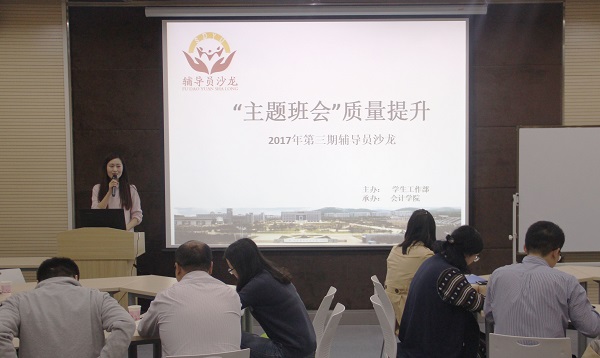 4月25日,我校2017年第三期辅导员沙龙在青年众创基地培训室举行。本次沙龙以“主题班会质量提升”为主题,由会计学院辅导员王慧主持。