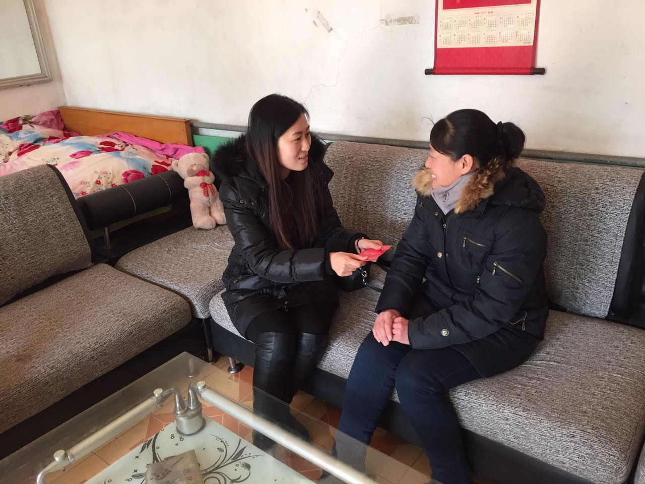 家访过程中,两位老师与学生家长倾心交谈,了解学生家庭经济来源、收支情况和学生成长历程;向学生家长介绍了学生在校学习、生活、受资助情况等。辅导员王慧代表学院将慰问金和慰问品送到学生家长手中,并向学生及家长送上了春节的祝福,希望学生在假期中能帮助家长做些力所能及的事情,替父母分担一点生活压力,并勉励她要树立战胜困难的信心和决心,自立自强、发奋学习,不辜负学校和家长的期望,以优异成绩回报国家、学校、家庭的培养和关爱。