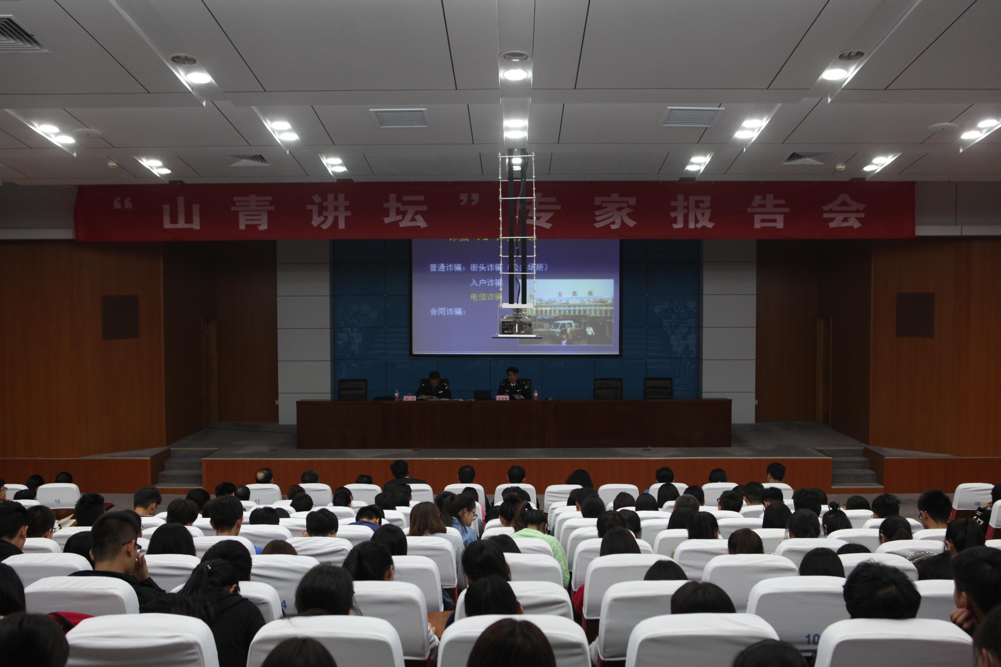 为进一步加强校园不良网络借贷风险防范和教育引导工作,增强大学生网络安全意识,提高大学生对电信网络诈骗手段的识别和防范能力,教育和引导学生树立正确的消费观念,10月27日,我校在学术报告厅举办以防范电信网络诈骗为专题的第142期“山青讲坛”。本期讲坛由济南市公安局刑警支队三大队政委刘丕民、副中队长王宁主讲。学校各部门安全信息员、全体辅导员及部分学生参加讲座。论坛由学生工作处赵丽娟主持。