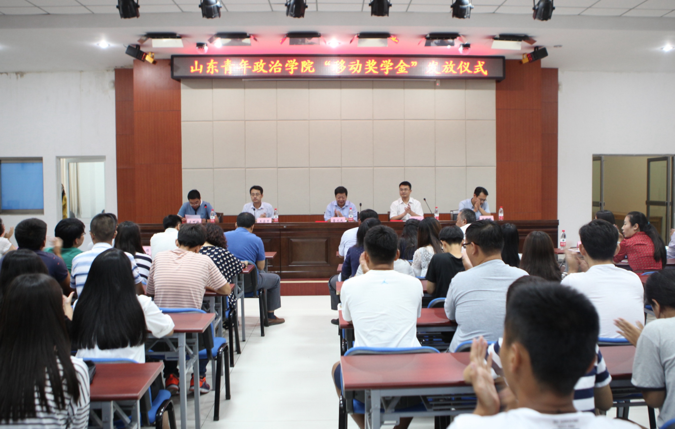 9月13日下午,学校在学术会议室举行了2015-2016学年“移动奖学金”发放仪式。会上对获奖学生颁发了荣誉证书和奖学金。学生工作处处长雷文庆、中国移动历城分公司总经理邴高飞、中国移动历城分公司经理郑波、各学院党总支副书记、负责资助工作的辅导员及获奖学生出席了会议。仪式由学生工作处副处长高珂强主持。