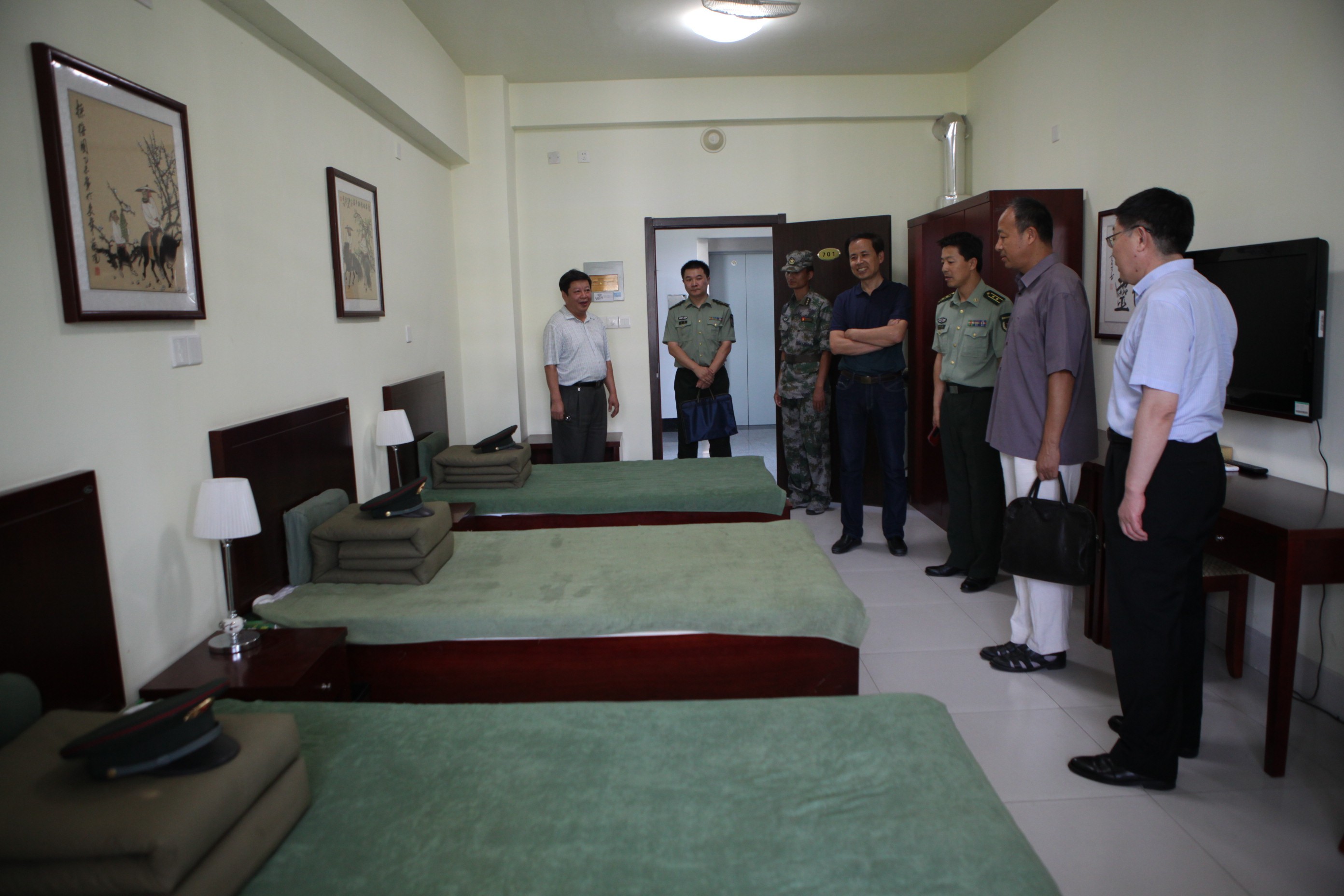 走出训练场,领导们又来到部队教官宿舍,询问了部队同志在学校的生活保障等情况,参观了教官内务整理,对部队严格要求、严格管理,给予了高度赞扬。