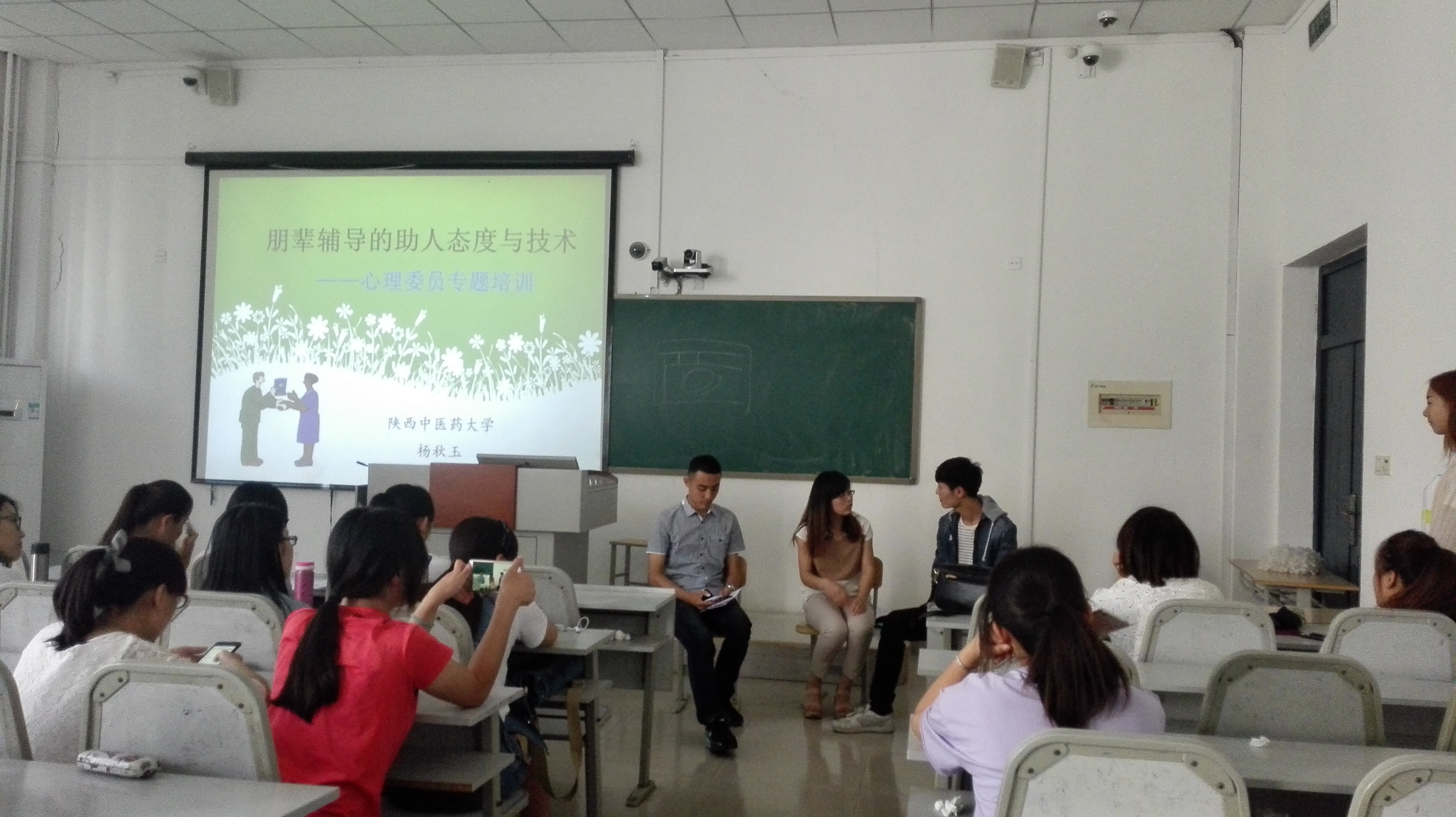 为进一步提高心理委员的理论与实践水平,发挥朋辈辅导在大学生心理健康教育工作中的重要作用,我校邀请陕西中医药大学辅导员杨秋玉于近日在电教楼102举行了《朋辈辅导的助人态度与技术》专题培训。各班心理委员、各学院心理站长参加了培训。