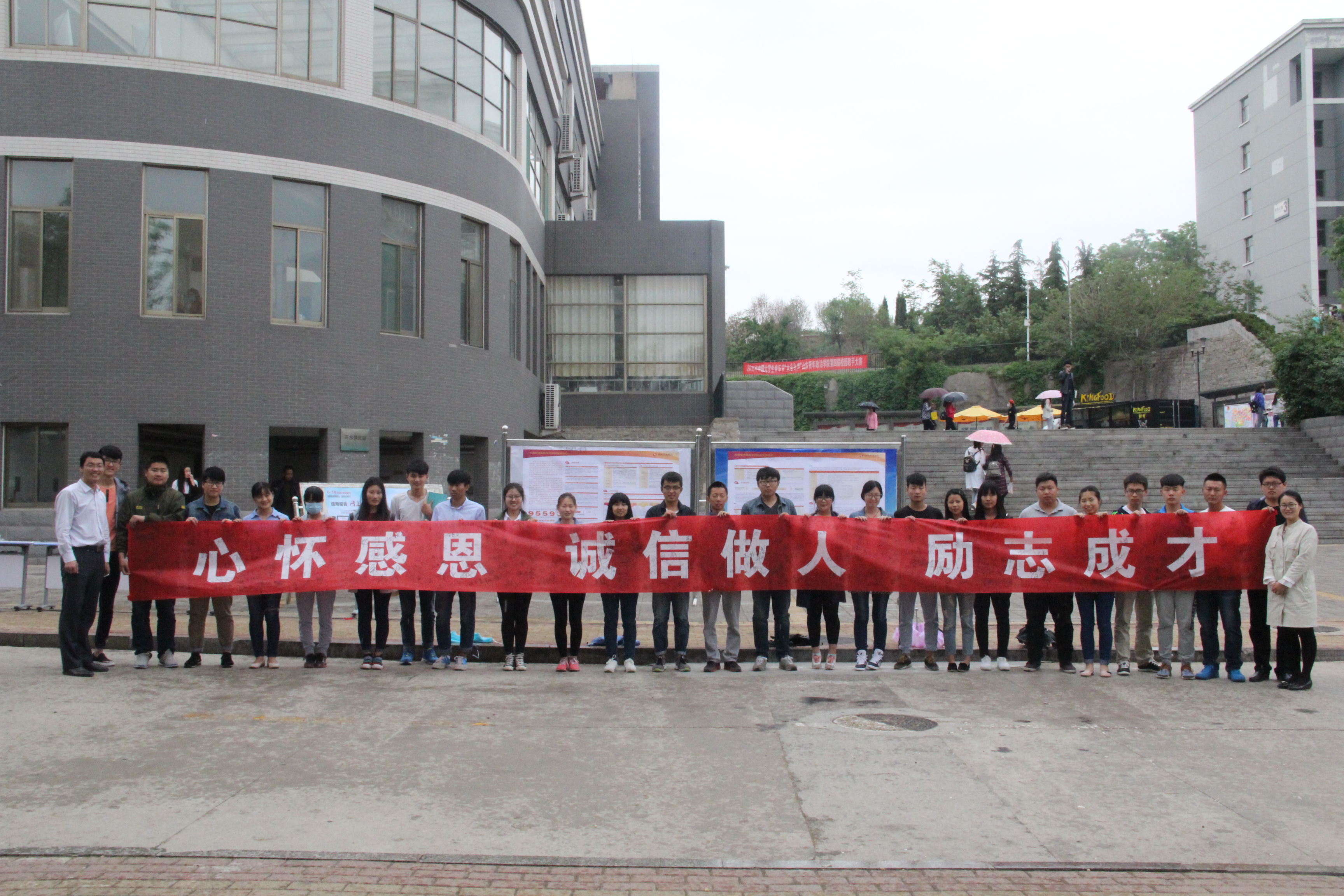4月26日,由学生工作处主办、经济管理学院承办的“心怀感恩 诚信做人 励志成才”诚信感恩教育系列活动暨诚信签名仪式在南苑广场正式启动。
