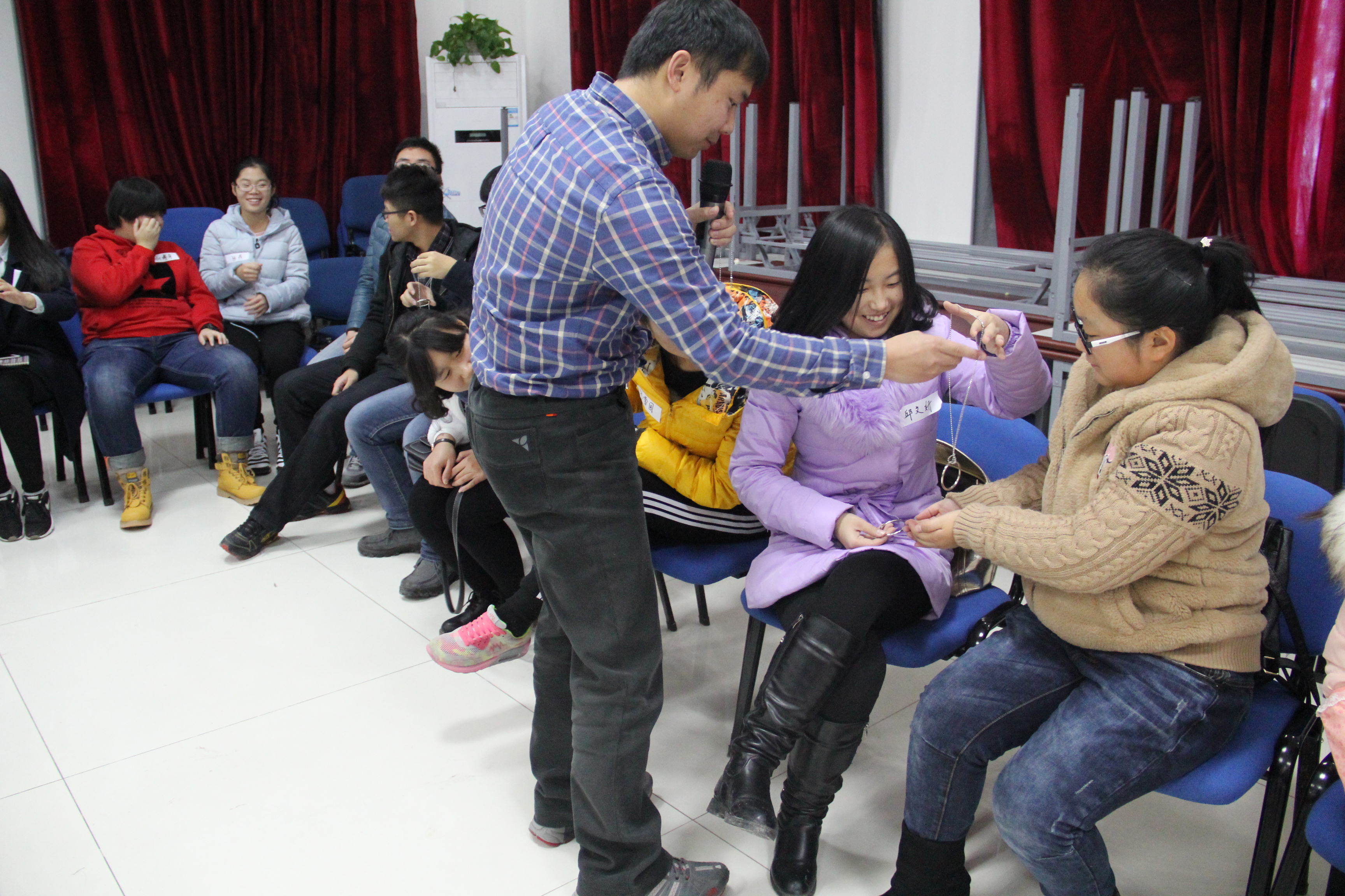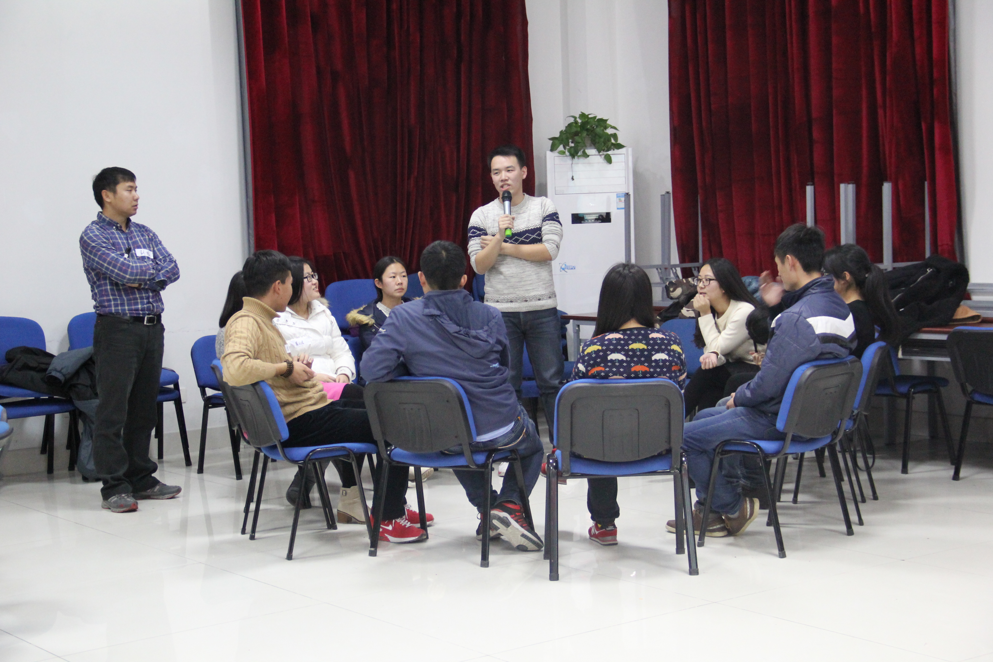 培训共分为历奇体验、理论学习与问答分享三个部分。培训伊始,彭振首先用能够吸引人的魔术环引起参与者的注意,同时也调动了大家的积极性。而后,彭振通过“梅花开”进行暖场,调动气氛,并完成小组随机分配。紧接着,“人名串串烧”拉近了成员间的距离,最大程度地增进了成员彼此间的交流。主体体验部分,彭振通过“龙卷风”用扑克牌加强了成员间的团结互助精神和整体凝聚力,将活动推向了高潮。稍时休息后,彭振将理论学习与历奇体验相结合,更好的展示了如何将理论运用到实际活动中,给参与者上了一堂生动形象的体验课。最后,在问答分享环节中,彭振主动与参与者进行分享,并对参与者的提问一一作出详细回答,在场的参与者受益匪浅。历奇培训活动在阵阵掌声中落下帷幕。