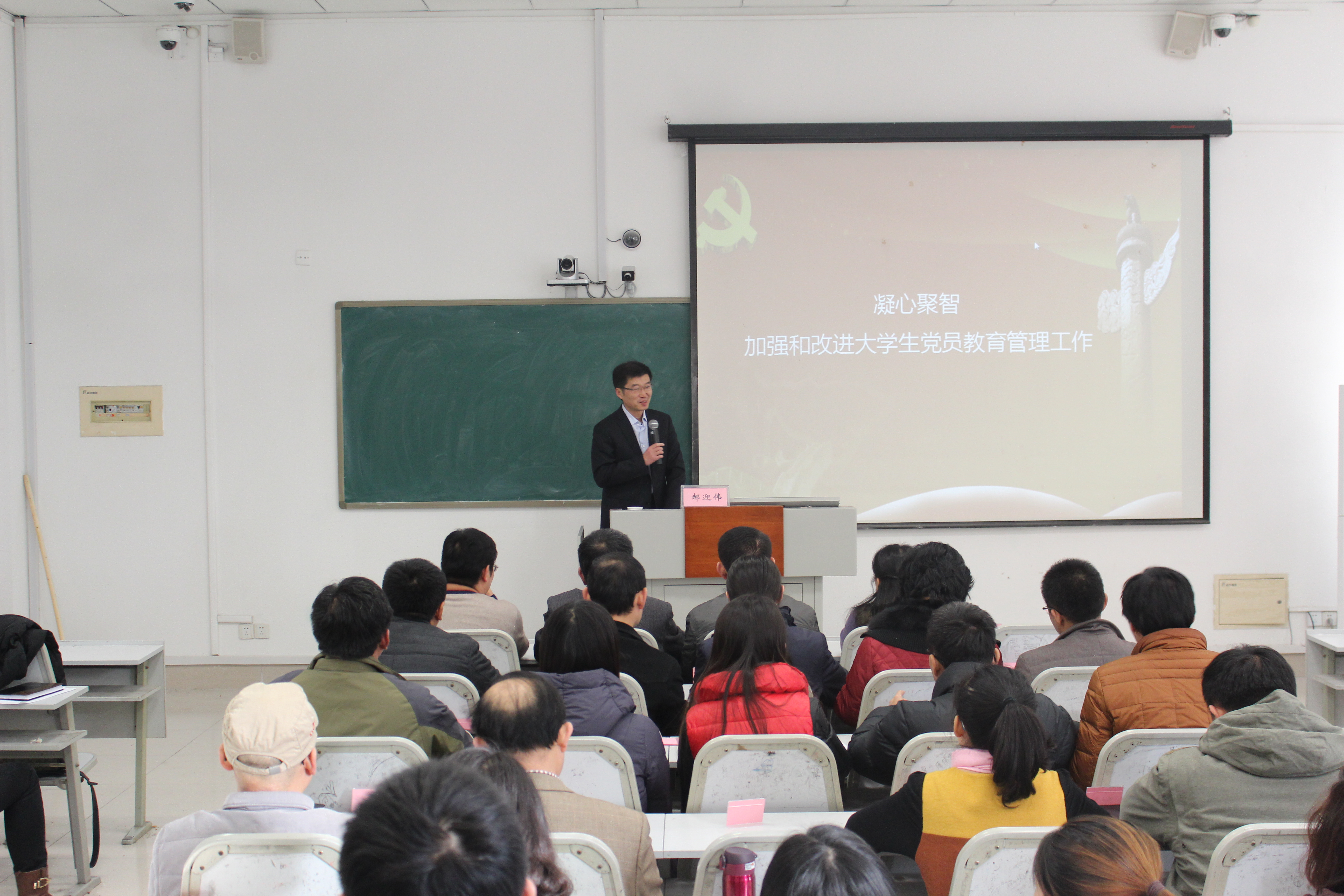 专题培训会上,郝迎伟书记以“凝心聚智,加强和改进大学生党员教育管理工作”为题,从当前大学生党员的主流积极向上、大学生党员教育和管理面临的问题、大学生党员教育管理的思路和对策三个方面展开,他讲到,近年来,各高校大学生党员数量持续增加,大学生党员队伍不断壮大,总体上看大学生党员主流是积极向上的。但我们在对大学生党员教育和管理过程中仍面临一些问题,如理论知识学习不够、党员先锋模范作用得不到体现、部分党员党性意识有待加强、教育方式滞后等等。他强调,加强大学生党员的教育管理,首先要把大学生党员发展和大学生党员的培养教育紧密结合在一起,要重视入党积极分子、预备党员和学生入党后的后续教育三个阶段;二是要把学生党员教育与理管工作与大学生思想政治教育工作紧密结合,加强大学生德育工作;三是要把学生党员教育与专业学习相结合,培养大学生党员善于学习、创新性实践和可持续发展的本领;四是要搭建学生党员教育管理的实践平台,把党员教育与强化宗旨意识相结合;五是要运用现代科学技术手段和管理手段,把学生党员教育管理与有效形式相结合。
