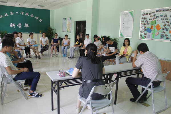 随后,在项目社工吕春苗的带领下,学生骨干团队进行“破冰游戏”,通过互相认识和互相评价,建立起良好的团队关系。在前期认识的基础上,项目社工还利用PPT为大家展示了“新青年”的服务内容。