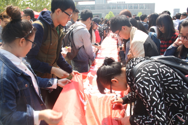 4月20日,由学生工作处主办和商学院承办的“携手诚信感恩 最美青春同行”暨“春晖行动”签名仪式在南苑餐厅广场正式启动。据悉,此次“携手诚信感恩 最美青春同行”诚信感恩教育活动将历时1个月在全校范围内组织开展,旨在通过丰富多彩的活动,将诚信感恩教育真正落实到学生的工作、学习和生活当中。同时学生工作处将启动“春晖行动”志愿服务活动,通过活动唤醒广大学生尤其是获奖受助学生的感恩意识,以勤奋学习、自强不息、互助互爱的实际行动回报国家、社会,成为奉献爱心、传递爱心的人,在全校范围内营造“塑造诚信品质,树立感恩意识,做文明大学生”的氛围。
