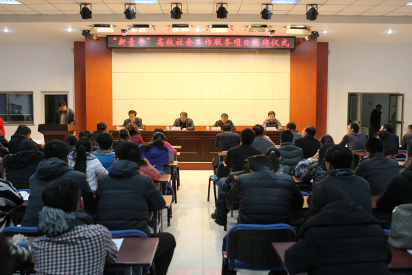 刘欣堂处长和张书明院长,共同为山青“新青年”高校社会工作服务项目揭牌。