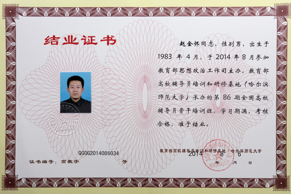 8月3日至8月7日,第86期全国高校辅导员骨干培训班在教育部高校辅导员培训和研修基地(哈尔滨师范大学)举行。来自全国高校共105名辅导员参加了培训班。我校舞蹈学院学工办副主任赵金怀参加了此次培训。