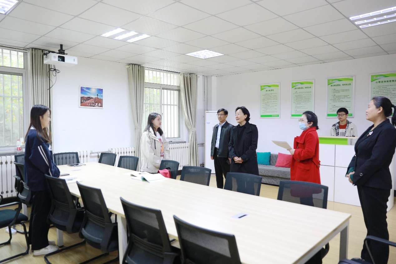 10月20日上午,学校党委书记魏艳菊到学校大学生心理健康教育咨询中心实地调研指导,强调要紧盯问题导向增强工作紧迫感,把全面加强和改进大学生心理健康教育工作作为“青年政治”人才培养的重要内容,进一步强化心理育人质量提升体系,促进学生心理健康素质与思想道德素质、科学文化素质协调发展。