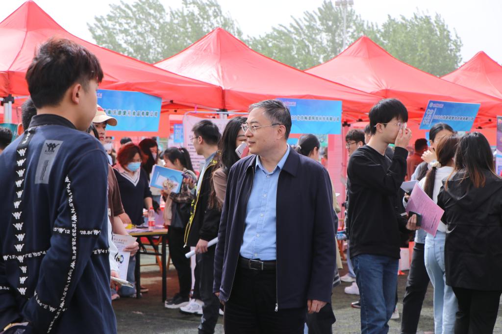 为贯彻落实党的二十大精神,高质量做好学校2023届毕业生就业工作,搭建用人单位与毕业生“双向选择”平台,4月15日上午,我校举办“春风送岗促就业 助力扬帆再启航”2023年高校毕业生春季双选会。学校党委副书记高峰到双选会现场,与用人单位和毕业生亲切交流,询问企业用工需求意向和毕业生求职准备情况,并勉励应聘毕业生找准职业定位,积极应聘。