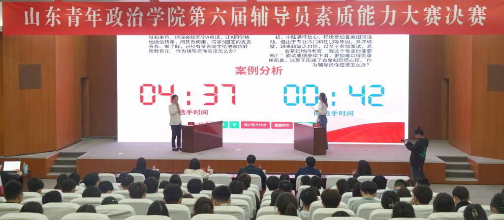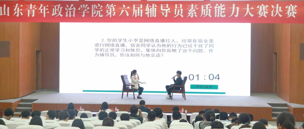 5月5日,我校第六届辅导员素质能力大赛决赛在图书馆学术报告厅举行。山东政法学院学生工作部部长安军、济南大学学生工作部部长刘芝、山东大学马克思主义学院党委副书记王海宁、齐鲁工业大学文化产业研究院常务副院长李月娥、山东建筑大学学生工作部副部长周秀艳受邀担任本次大赛评委。各学院分管学生工作副书记、专职辅导员、部分学生代表到场观摩比赛。