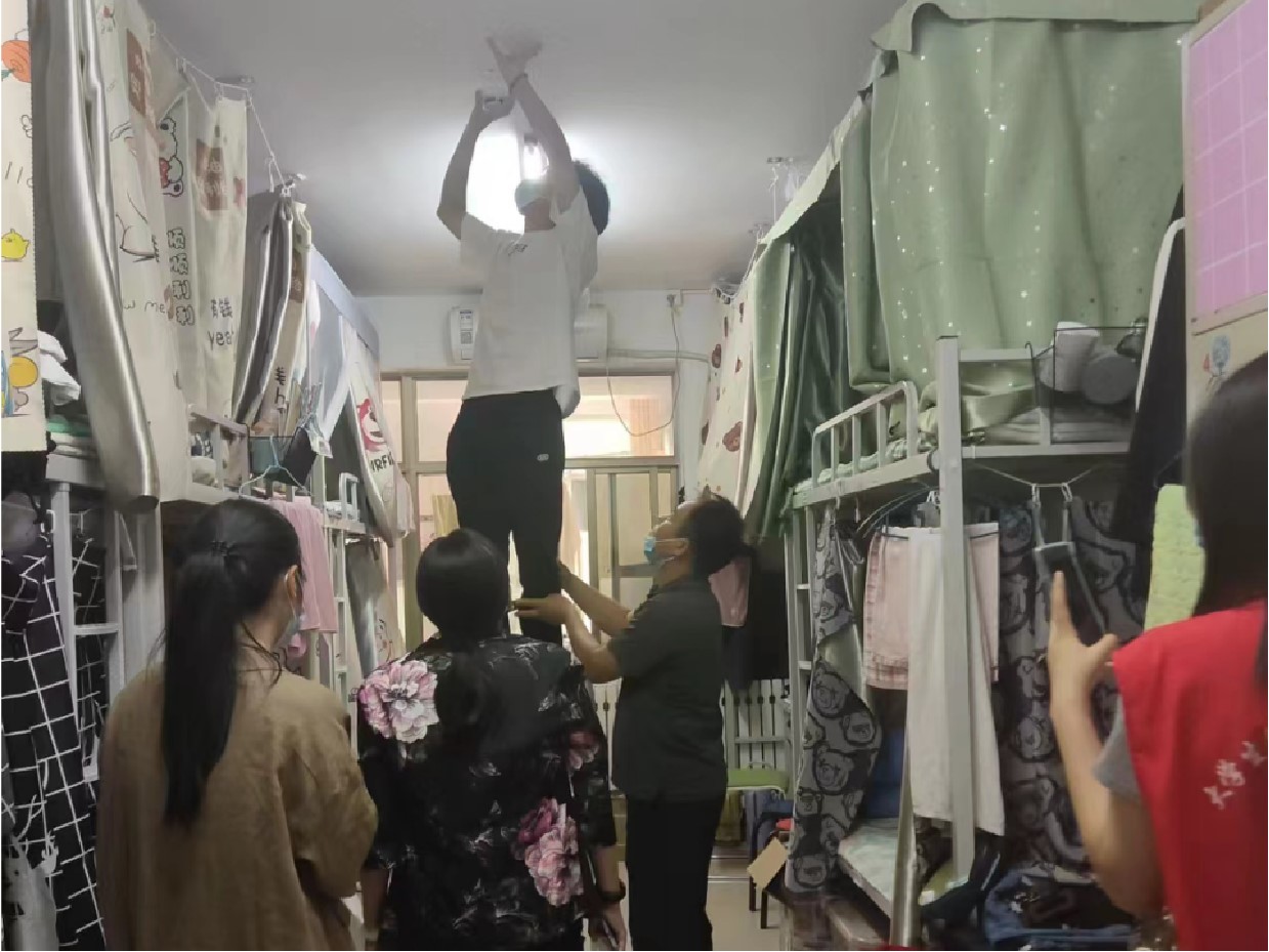 检查组深入学生宿舍,全面排查存在的各类安全隐患和环境卫生突出问题,旨在通过以查促改、以改促进,彻底消除学生社区各类安全隐患,进一步增强大学生安全意识、养成良好卫生习惯,创建和谐安定的校园环境。检查组重点对公共设施维护、消防设施使用、供电安全管理、安全隐患物品排查等各方面情况进行深入细致检查,查摆存在问题,落实责任分工,限定整改时间,切实做到安全隐患排查不留盲点,隐患整治不留死角。