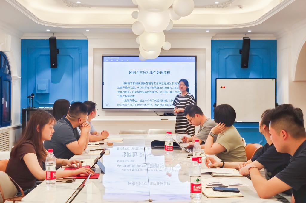 为进一步检验阶段学习成果,加强辅导员间工作交流,期间,培训班围绕突发事件应急处理流程开展分组交流研讨。研讨会既讨论交流培训班学习成果,分享感悟体会,又结合辅导员中心工作和主责主业,各自分享在工作中的好经验好做法好成效,增进了辅导员相互借鉴、相互促进,切实提升了主题教育实效。