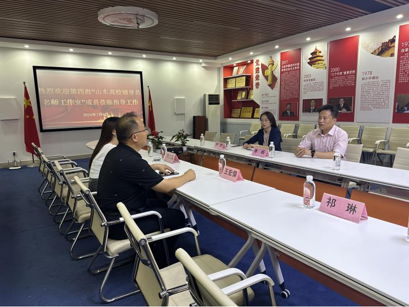 为进一步加强辅导员队伍建设,充分发挥“以美育人”思政品牌示范引领作用,在校际交流合作中切实推进学校省级辅导员名师工作室内涵式发展,7月4日下午,我校山东高校第四批辅导员名师工作室“美育协同育人工作室”主持人李杨、成员尹伊一行赴青岛农业大学山东高校第三批辅导员名师工作室“心弦美育工作室”开展经验交流。青岛农业大学动漫与传媒学院党委副书记、工作室主持人王宏儒,辅导员李之泓迎接来访团队,双方进行了座谈交流。