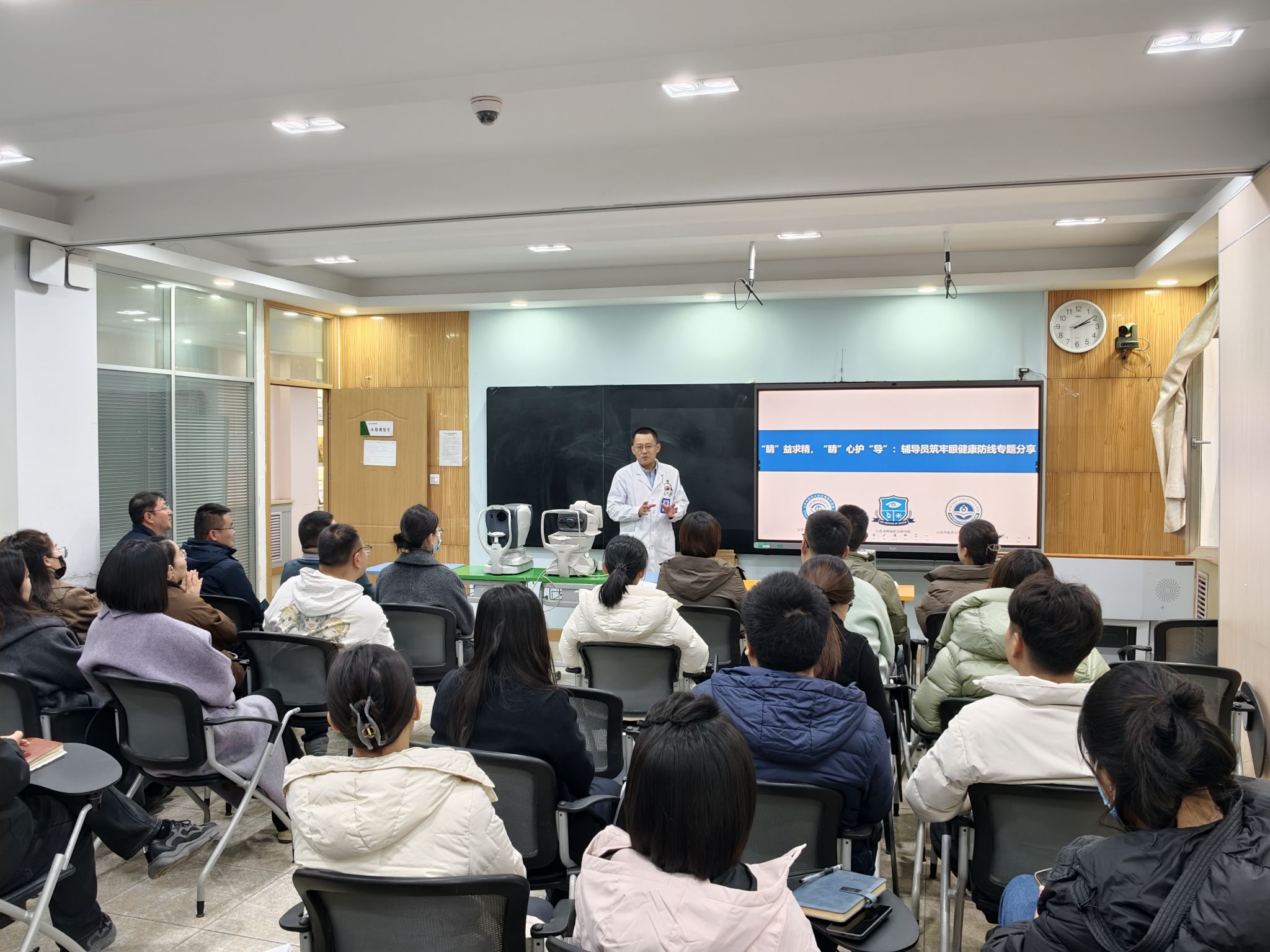 沙龙旨在关怀长期伏案工作、频繁使用电子设备的辅导员群体的视力健康,通过专业分享、互动交流、健康监测等形式,向辅导员们系统介绍了常见眼健康问题的预防、科学用眼习惯的养成、日常护眼技巧以及健康工作生活方式等相关知识,引导大家在工作之余重视眼部保健,以更佳的身心状态投入学生教育管理工作。主讲内容贴近辅导员工作实际,现场气氛温馨热烈。参与活动的辅导员纷纷表示,此次沙龙不仅增强了自身对眼健康的科学认知,掌握了实用的护眼方法,更感受到了学校对辅导员队伍细致入微的关怀。活动有效舒缓了工作压力,有助于大家以更加饱满的精神状态和清晰的视野,聚焦主责主业,更好地服务学生成长成才。
