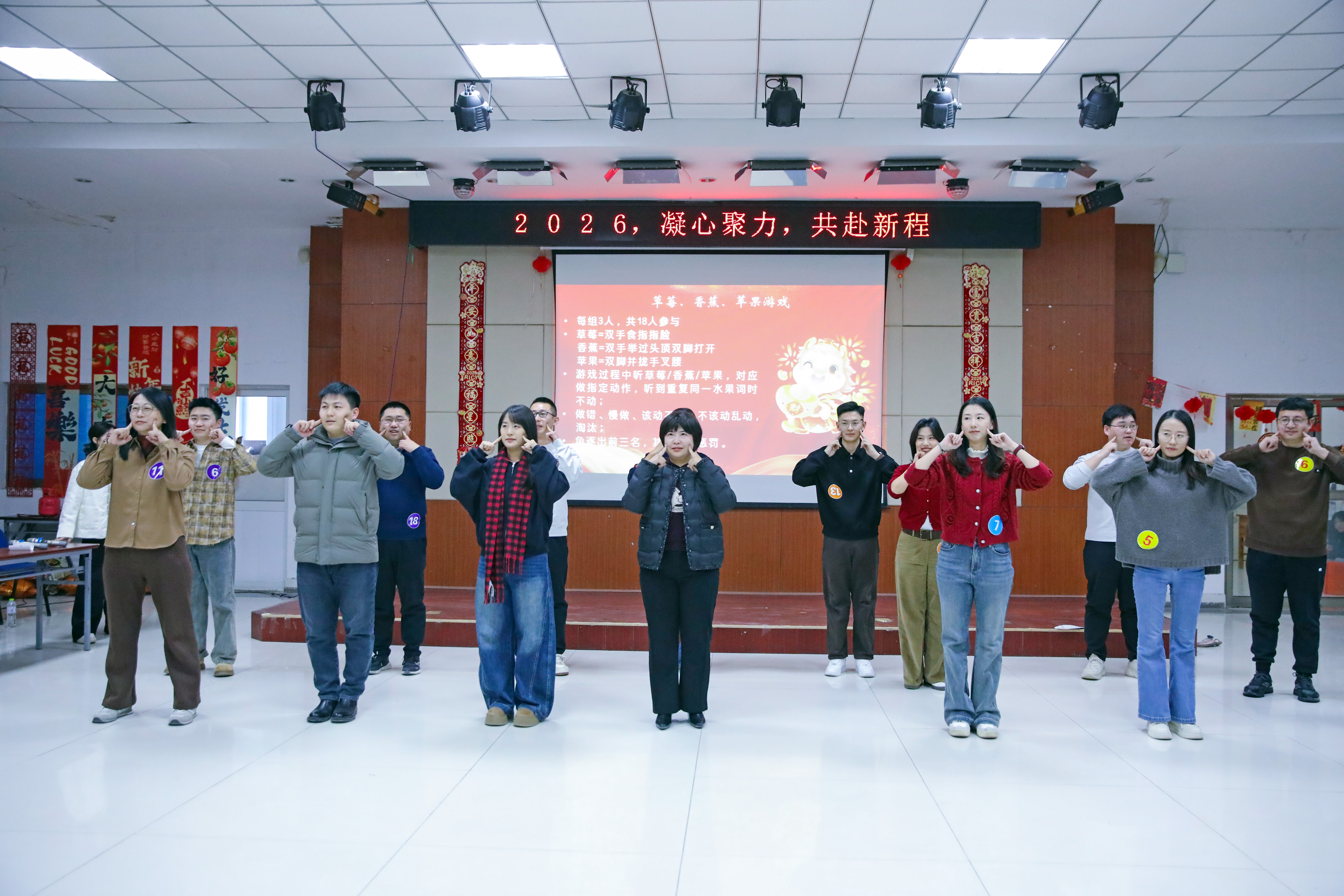 活动在轻松愉快的暖场视频中拉开序幕,视频生动展现了学工队伍日常工作的点滴瞬间,引发全场热烈共鸣。随后进行的“苹果、草莓、香蕉”“Emoji猜成语”“骏马奔福”等互动游戏,以轻松有趣的方式促进了团队协作与交流,充分展现了学工队伍团结协作、积极向上的精神风貌。穿插其中的幸运抽奖环节与精彩节目表演不断点燃现场氛围,生动展现了辅导员们多才多艺、充满活力的一面,掌声与欢笑声此起彼伏。活动在全场合唱《相亲相爱》的温馨旋律中圆满落幕。大家纷纷表示,此次联谊活动不仅让大家在工作之余放松了身心,增强了团队凝聚力与归属感,更深刻体会到了学校对学工队伍的重视与关怀。今后,将以更饱满的热情和更扎实的作风投身学生思政工作,持续提升专业能力素养,更好服务学生全面发展、成长成才。