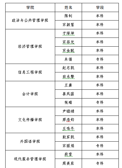 按照《关于做好2019年高校奖助学金评审工作的通知》(鲁学助〔2019〕22号)、《关于下达2019年普通高校奖助学金经费的通知》(鲁学助〔2019〕23号)要求,根据《山东青年政治学院国家奖学金评选管理办法》,学生工作处严格按照评选条件和评选工作程序,组织开展相关工作,产生了我校2019年度国家奖学金获奖学生候选名单,现公示如下: