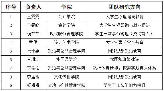 为全面落实全国高校思想政治工作会议精神,引导辅导员加强工作研究、深化实践成效、提升理论素养,推进辅导员队伍职业化、专业化建设,促进思政工作水平全面提升,根据学校学生工作实际,结合高校思政工作的新形势新变化新要求,学校组织开展了第二批辅导员工作研究团队申报组建工作。