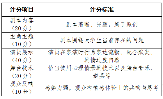 各学院可派有意愿参加大赛的代表参加心理情景剧培训活动(培训时间另行通知)。