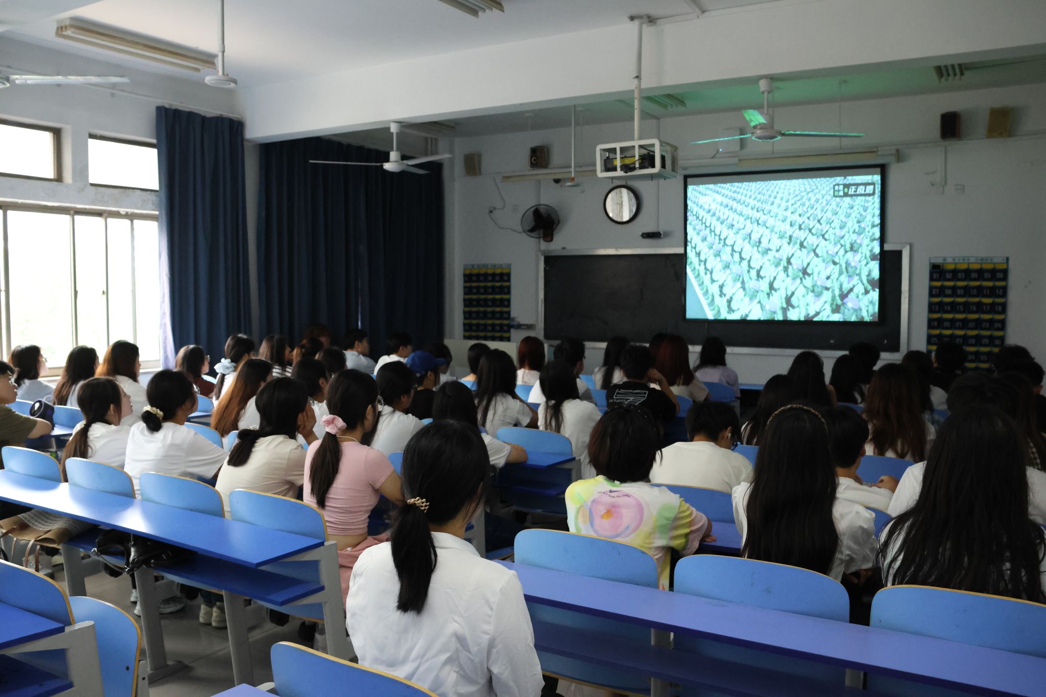直播期间,同学们专注凝视屏幕,认真聆听大会重要讲话,在实时呈现的场景中感悟伟大抗战精神。当阅兵仪式通过直播展现在眼前时,现场响起阵阵掌声,同学们的民族自豪感油然而生。