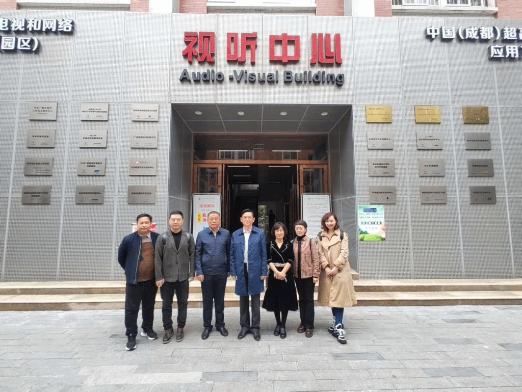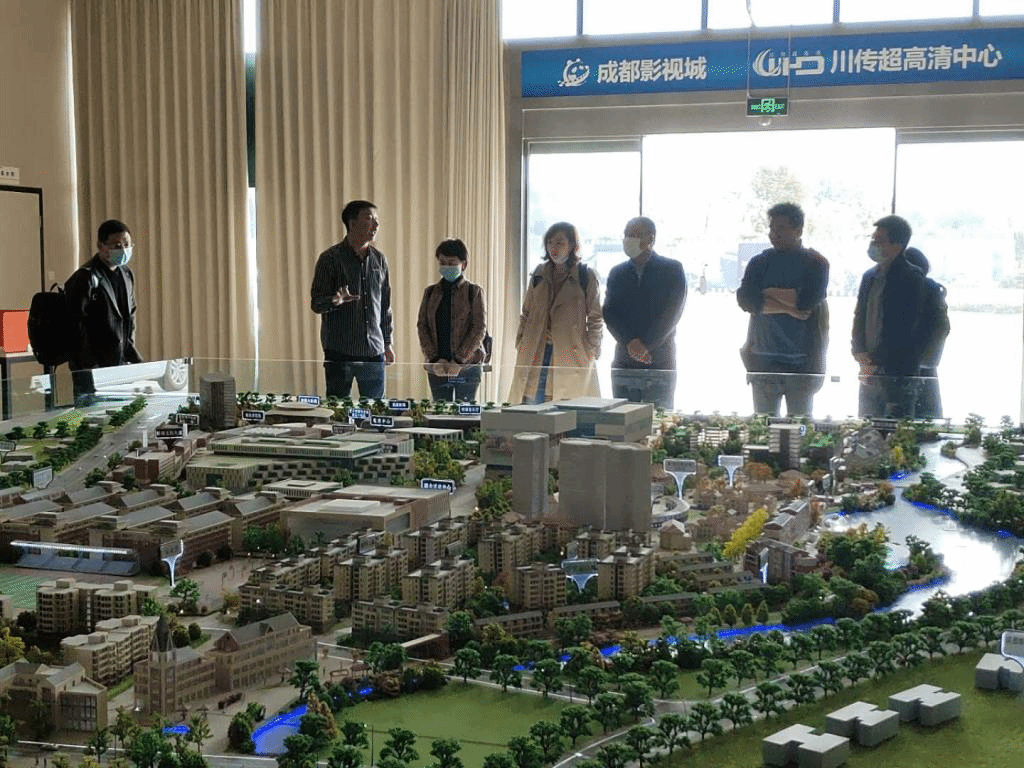 当天下午,一行人到成都影视硅谷、成都华栖云科技有限公司参观调研。位于四川传媒学院新校区的成都影视硅谷·超高清创新应用产业基地,是国内一流的集电影科技、VR/AR、互动影视一体化的大型互动数字创意产业的生态高科技电影科普基地和产业基地,集影视动漫与文化传媒同高新科技融合发展。王连峰一行先前听取了整体性介绍,体验了该校团队制作的裸眼3D-VR超高清数字全景系统,随后仔细参观了超高清全景重点实验室、影视硅谷超高清视听制作研发双创基地、文创科教产业园等诸多项目。