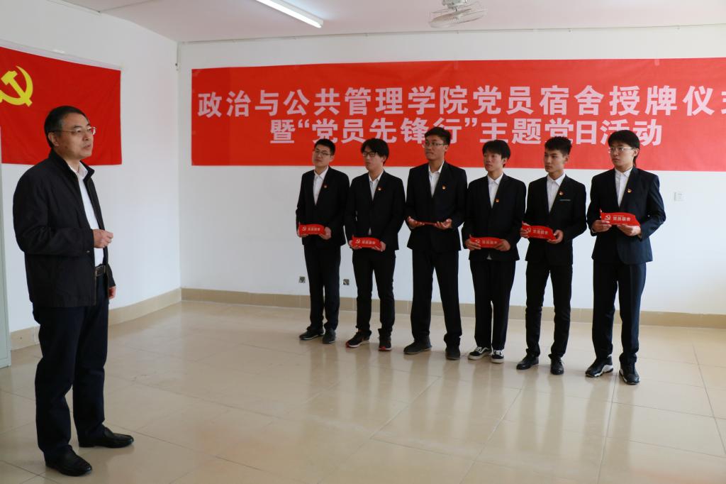 为充分发挥党员宿舍在学生社区的示范引领作用,政管学院以学生党团先锋站为抓手,积极构建学生社区党性教育阵地。10月26日,政治与公共管理学院党员宿舍授牌仪式暨“党员先锋行”主题党日活动于学生公寓三号楼党团先锋站成功举行。学校党委副书记高峰、学生工作部部长石瑞宝、校团委书记孟祥佳、政管学院院长王玉香、政管学院党总支书记丁萍、党总支副书记王正坤等出席活动。本次活动由学生第一党支部书记李岳松主持,政管学院学生党员代表参加了此次活动。学校党委副书记高峰同志为政管学院党员宿舍代表授牌。