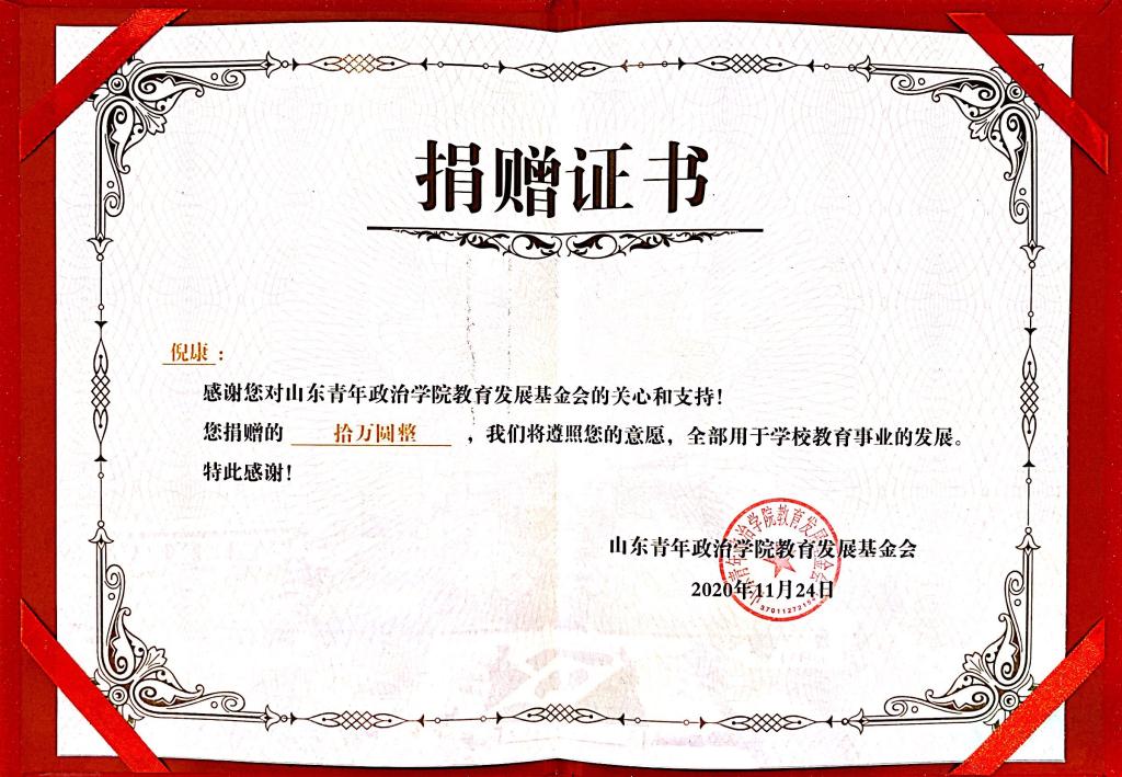 近日,外国语学院优秀校友倪康向山东青年政治学院教育发展基金会捐赠人民币10万元,用于创立奖学金及专业学科建设,支持学校建设与发展。