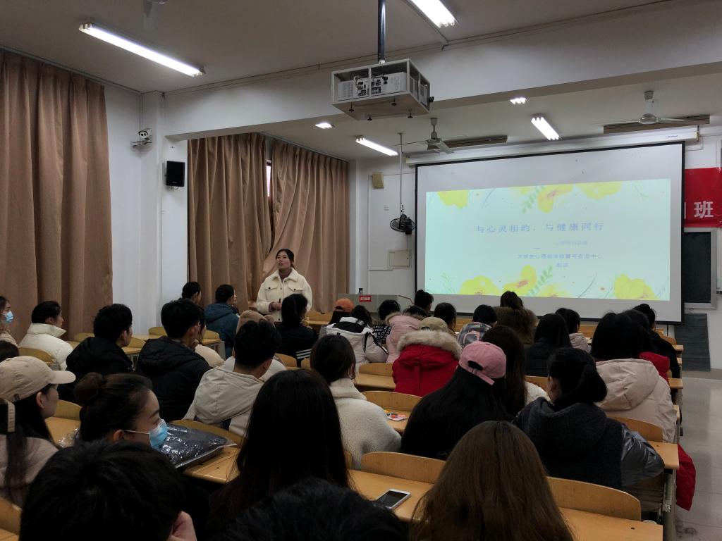 讲座中,赵琪分别从对心理健康的认识误区、常见的心理危机、心理委员的角色定位等五个方面展开讲解,内容丰富,深入浅出。针对当前大学生心理现状,结合常见的现象进行讲解,舒解了大家的情绪困扰,让同学们对心理健康有了更深一步的认识。