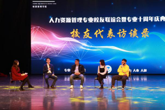 发言结束后,大会进行至访谈环节,由经济管理学院副院长李鹏老师主持,对来到现场的优秀校友进行访谈。校友们在访谈中畅谈了对学校、对老师的深厚感情,以及对学弟学妹的深切期望。最后,由经济管理学院副院长万利老师主持颁奖仪式,分别为优秀教师代表、优秀校友代表以及优秀在校生代表颁发了专业十周年纪念奖章。