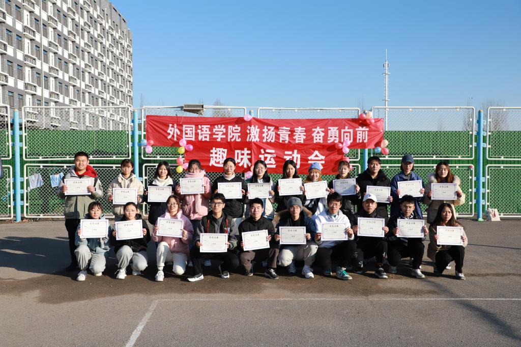为响应团中央号召,积极倡导和组织学生参加课外体育锻炼,全面提高大学生综合素质,加强校园文化建设,近日,外国语学院举办“激扬青春,奋勇向前”趣味运动会。
