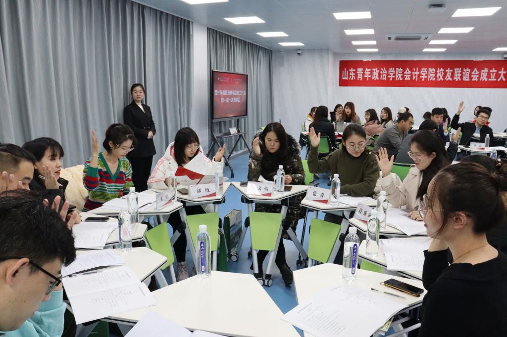 拳拳学子心,浓浓母校情。12月6日,会计学院校友联谊会暨一届一次理事会于知行楼503智慧教室隆重召开,各地校友欢聚一堂,畅叙昔日友谊,同绘母校美好蓝图。本次会议采用线上、线下结合的方式进行,不便到达现场的校友们通过线上方式参与其中。党委副书记高峰、学生工作部部长石瑞宝、会计学院院长白洁、副院长崔伟、党总支副书记倪国锋、学院历任领导韩伟波教授及审计处许维祥处长、校友代表和师生代表齐聚线上线下,共商山东青年政治学院会计学院校友会工作。本次会议主题为“勠力同心,携手并进”,由会计学院党总支书记夏继周主持。
